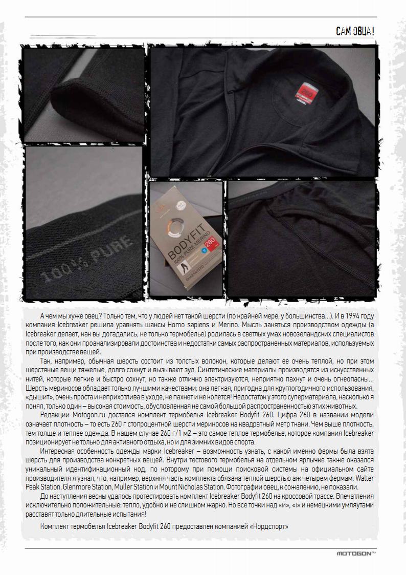 Как мало мы знаем об овцах! Иначе бы все, увлекающиеся зимней ездой кроссмены, давно бы ездили не в дедушкиных рейтузах поверх шерстяных гульфиков, а в термобелье из шерсти мериносов!.. Нет, мериносы – это не смесь меринов и латиносов. Это очень особенные овцы, поставляющие новозеландской компании Icebreaker бесценное сырье.
