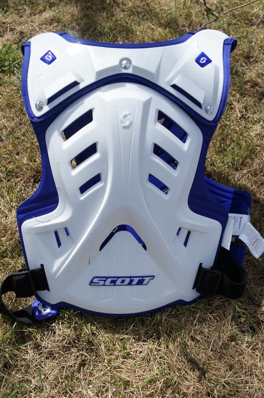 У компании Scott существует две модели, “Ricochet XC” со съемными наплечниками и “ Ricochet SX” без оных. Я выбрал ту, что полегче. Получил посылку, достал, окинул взглядом. Сделано все достаточно добротно. Панцирь состоит из 3-х частей, изготовленных из прочного, гибкого пластика: наплечная часть, спина и грудина. Спина имеет “Y” образное ребро жесткости, а также несколько грамотно расположенных вентиляционных отверстий.