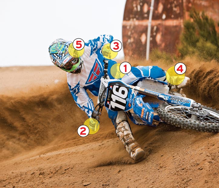 Номер 1: Когда вы едете в поворотах, как этот, важно позиционировать свое тело в центре мотоцикла. Поскольку это песчаный поворот, то вы не должны пододвигаться к передней части мотоцикла, и в то же время отодвигаться далеко назад, потому что это может привести к потере контроля над машиной. Если вы слишком далеко назад, есть хороший шанс, что он выскочит из-под вас , если вы переборщите с дросселем. Сидите в центре сиденья, так ваш вес будет распределен одинаково, будет лучше тяга и контроль над мотоциклом.