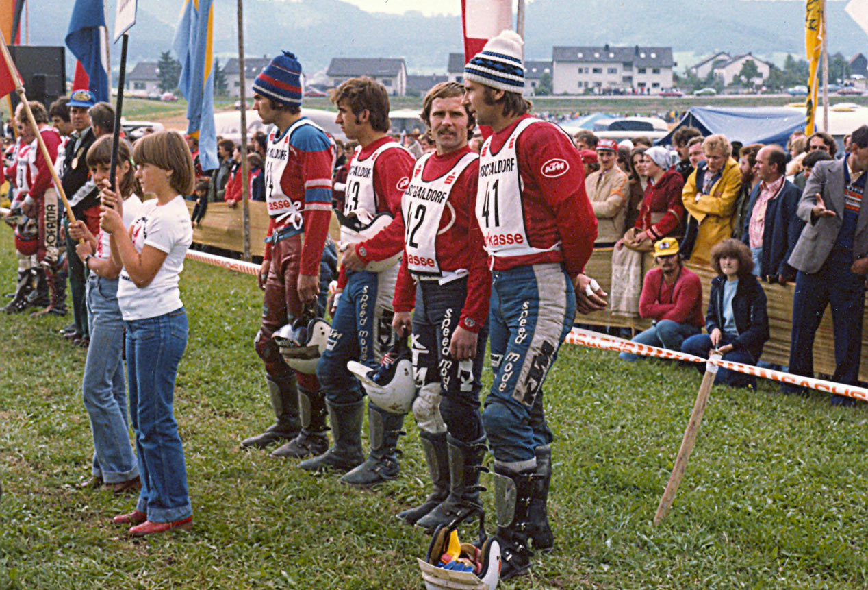 1978 год. Сборная СССР (Владимир Худяков, Валерий Корнеев, Владимир Кавинов, Геннадий Моисеев) на Мотокроссе Наций.