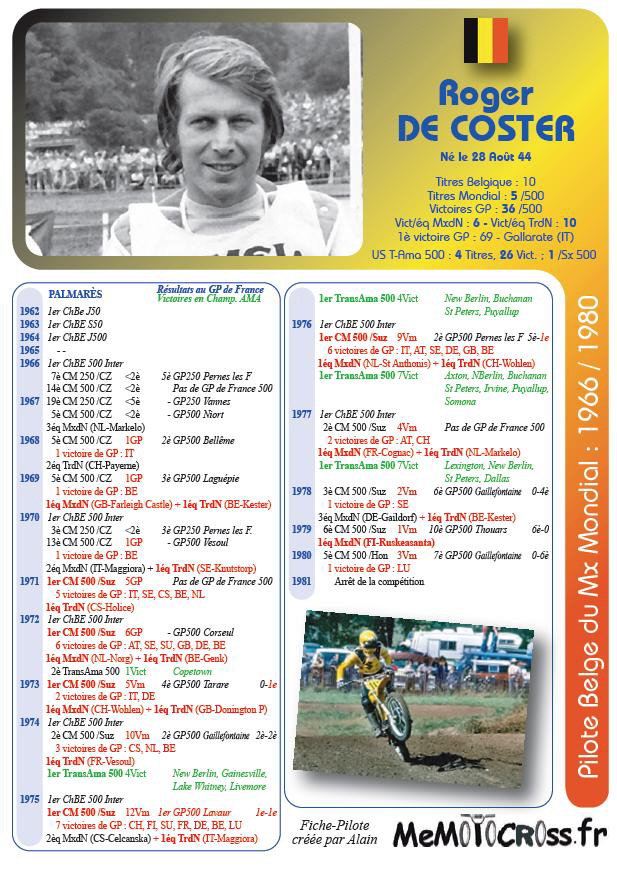 Легенды МХ: Роже ДеКостер. 31.10.2013 Роман Мишенев (_) Слайд-шоу... Карьера в слайд-шоу легенды мотокросса, пятикратного чемпиона мира - бельгийца Роже ДеКостера. Комментарии Комментарии к этой статье запрещены.