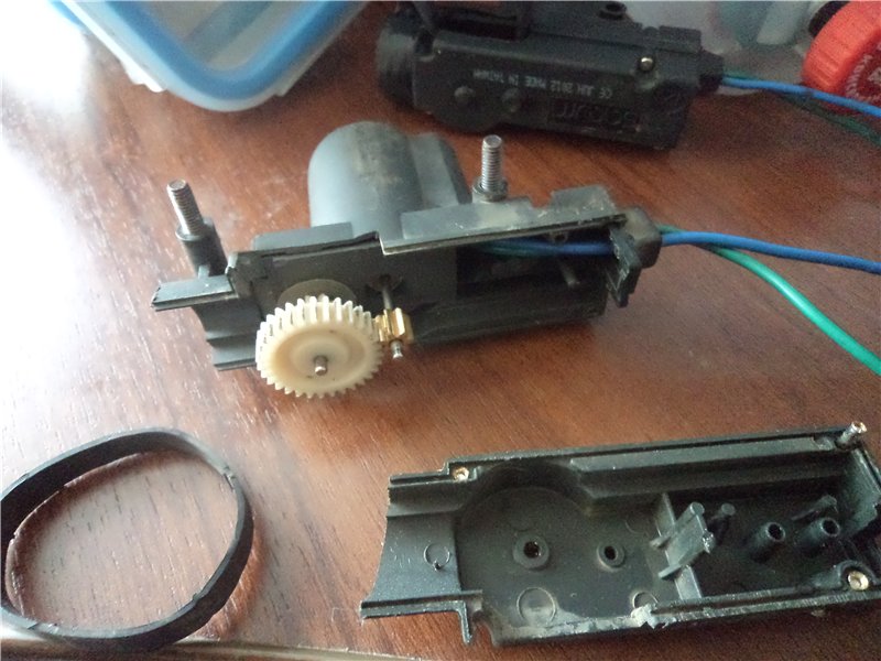 теперь о "моторчике". я поставил движок от электропривода замка двери - он есть в любом автомагазе. 100 рублей всего.