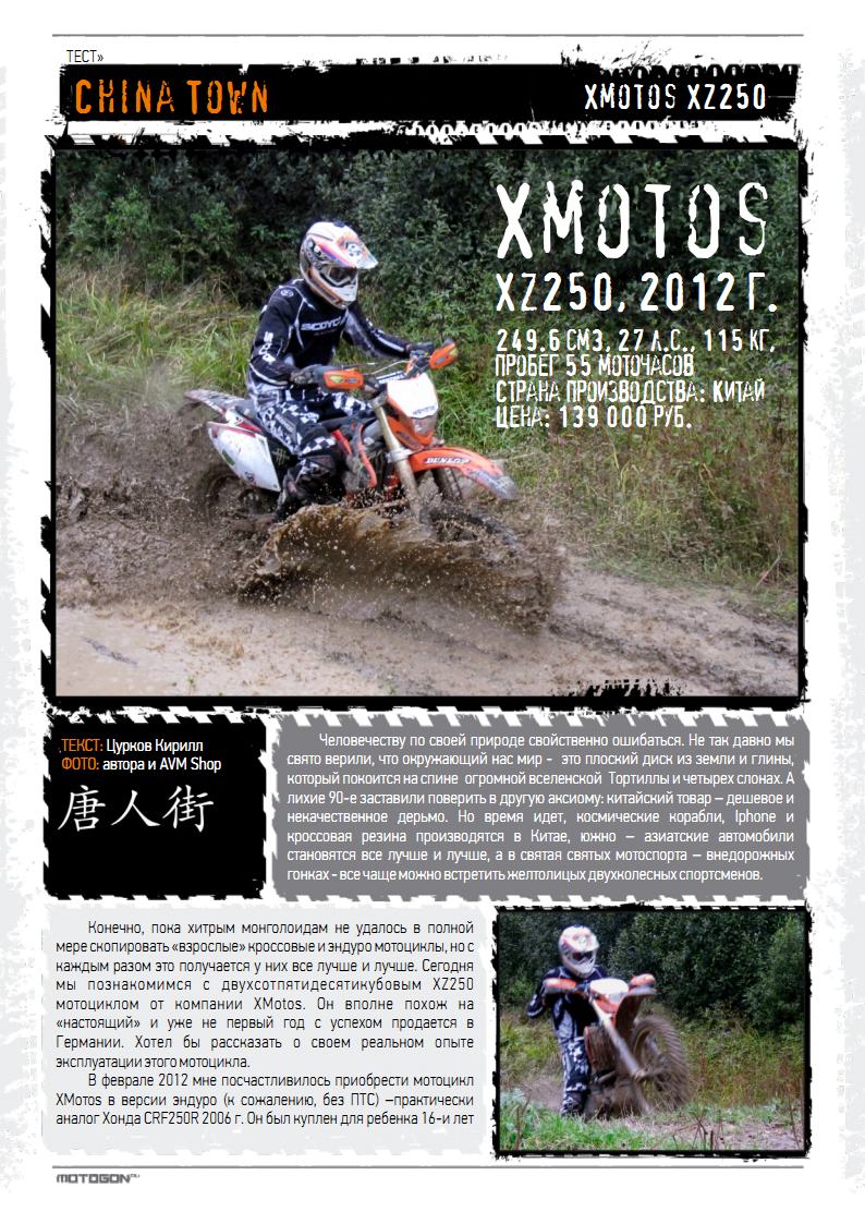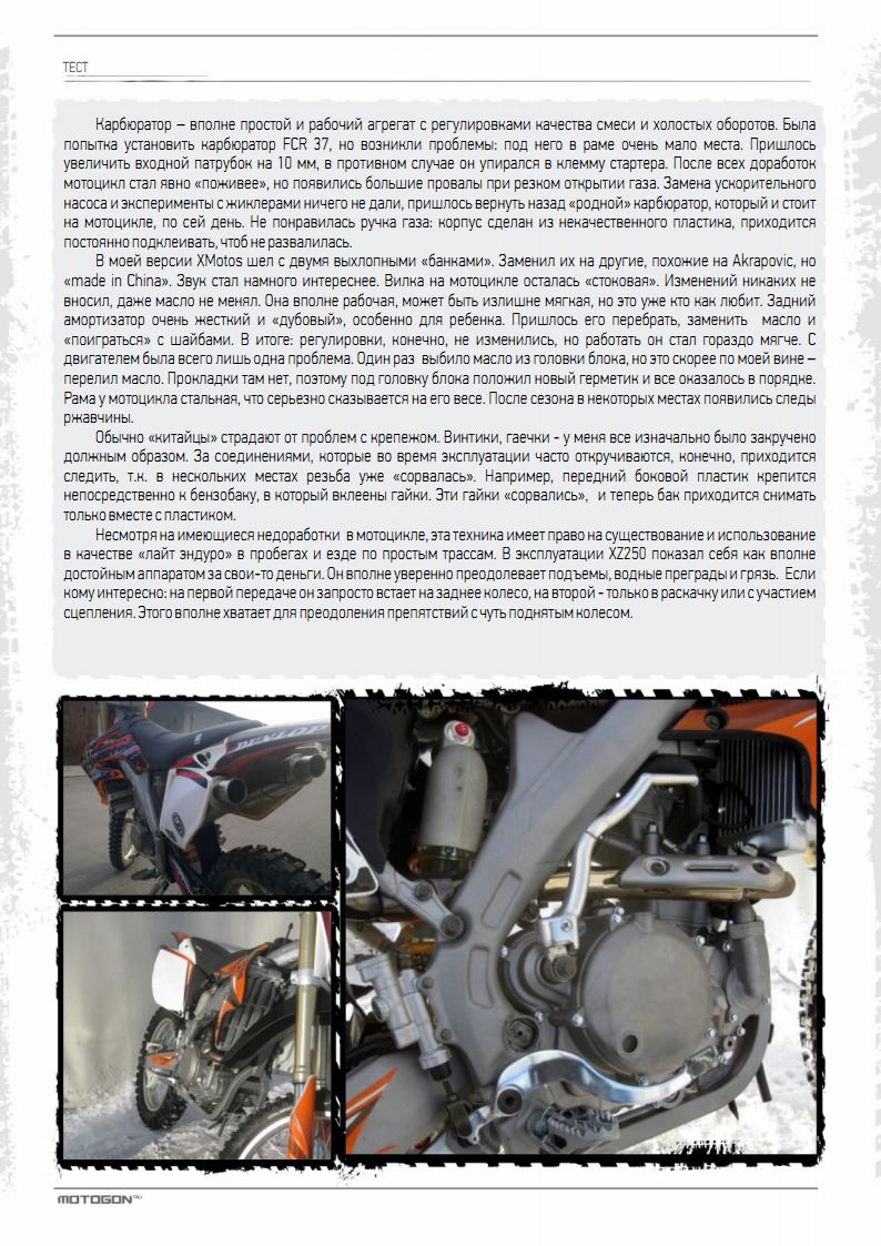 XMotos XZ250, 2012 г., 249.6 см3, 27 л.с., 115 кг, пробег 55 моточасов