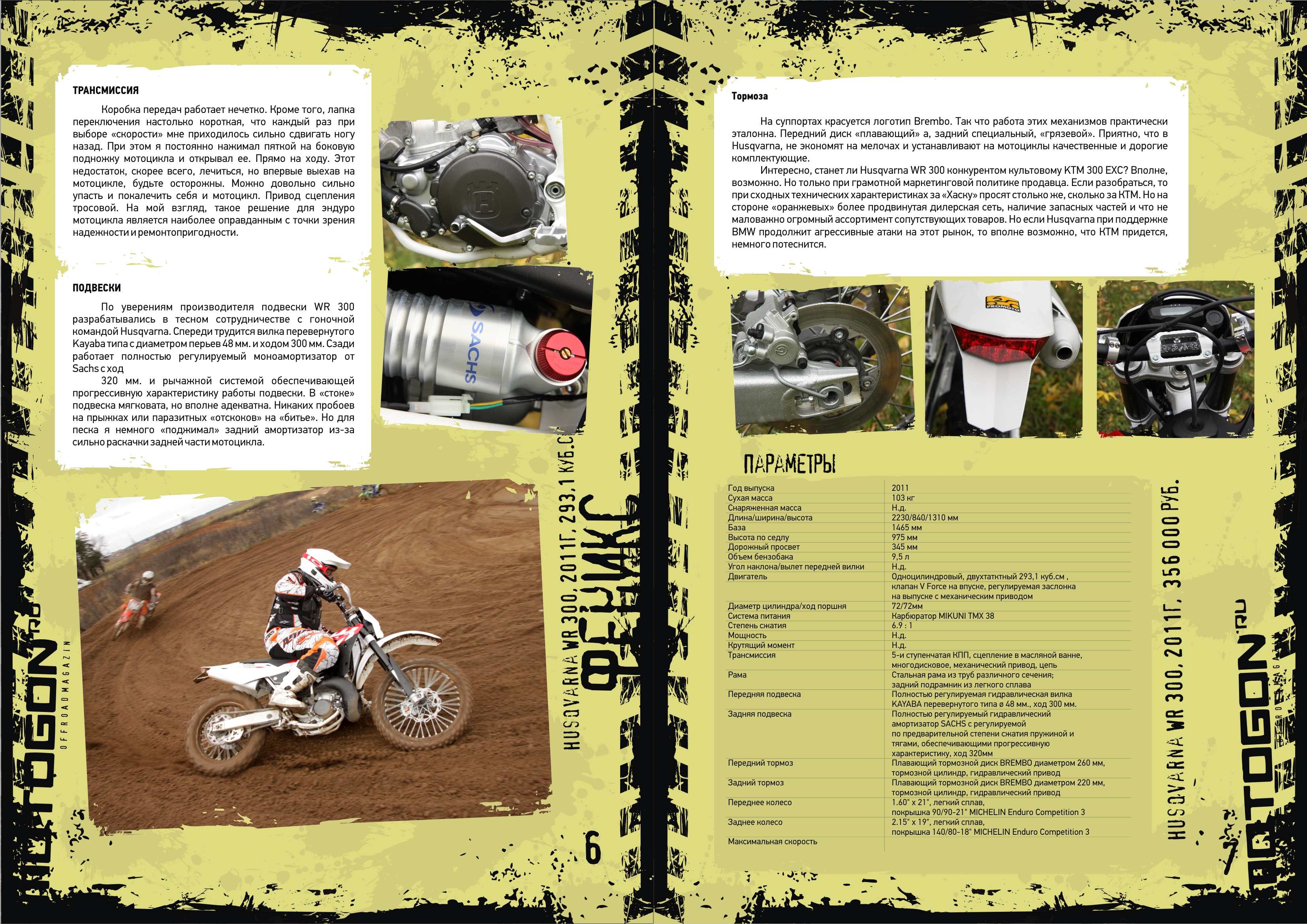 Вопреки расхожему мнению, Husqvarna это не только великолепные бензопилы, газонокосилки и прочий садово-хозяйственный инвентарь. Под интернациональным бело-красным флагом уже много лет выпускаются ультимативные внедорожные мотоциклы. Подробней об одном из них вы сможете почитать в первом выпуске электронного журнала Motogon offroad magazin