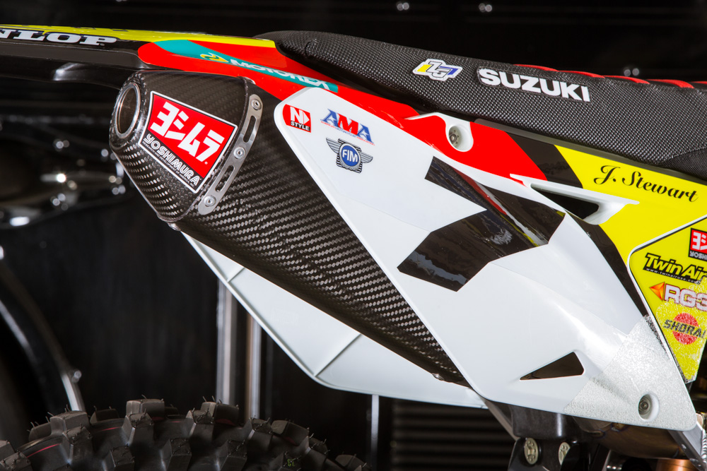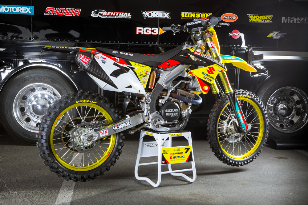 В настоящее время Джеймс Стюарт едет за команду Yoshimura Suzuki свой второй полный сезон. На первом этапе АМА Суперкросс 2014 в Анахайме мы смогли поближе разглядеть мотоцикл Джеймса и сделать подробные фото.