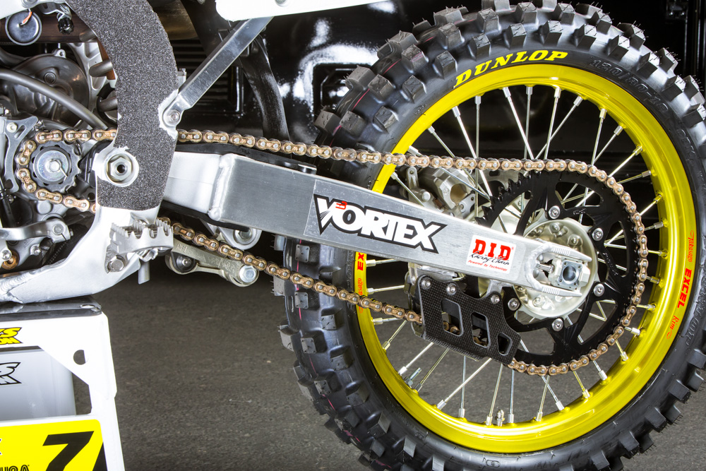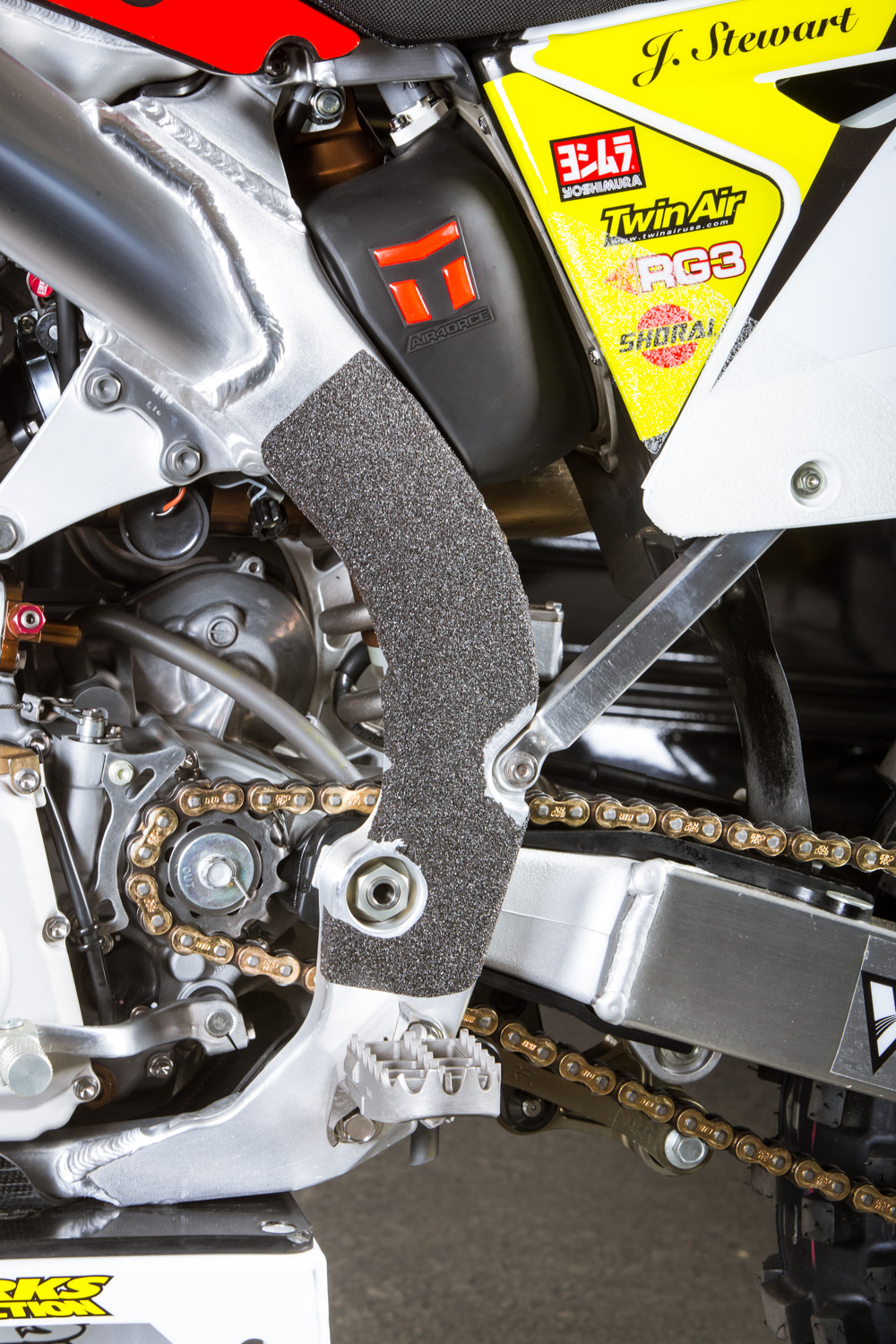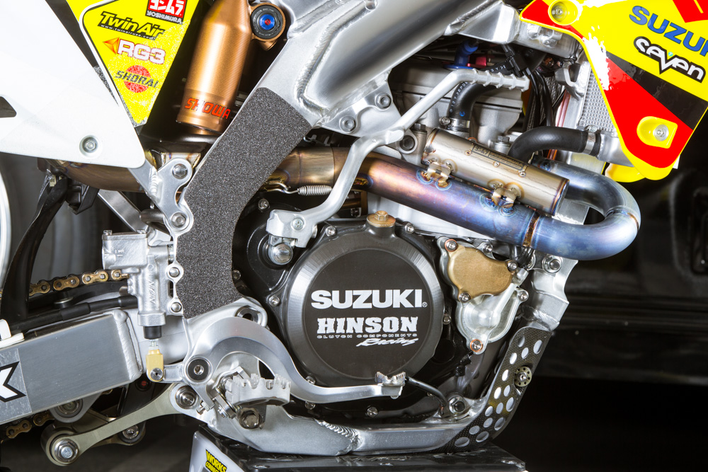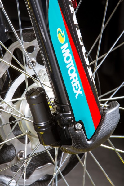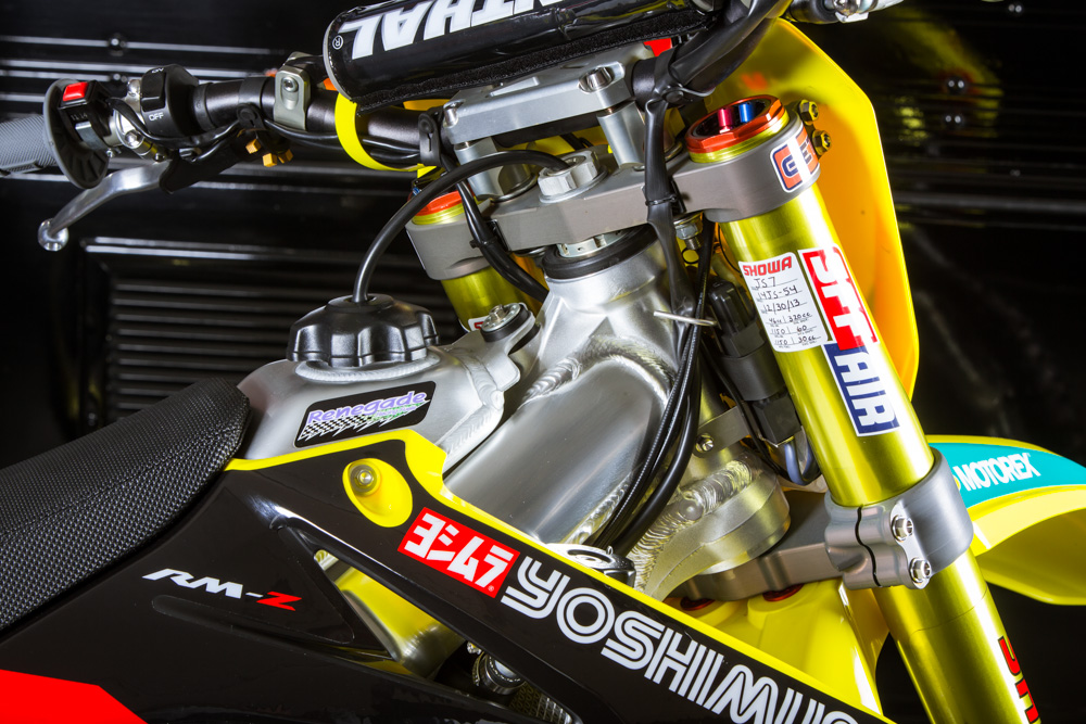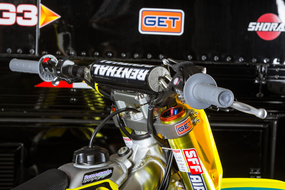 Мотоцикл Стюарта – это, конечно же, далеко не «стандарт», но и не имеет каких-либо сумасшедших инноваций или дополнений. В этом году изменений два - это воздушная вилка Showa Triple Air Fork и специально для суперкросса, команда решила установить новый выхлоп из карбона и титана, чтобы снизить вес.