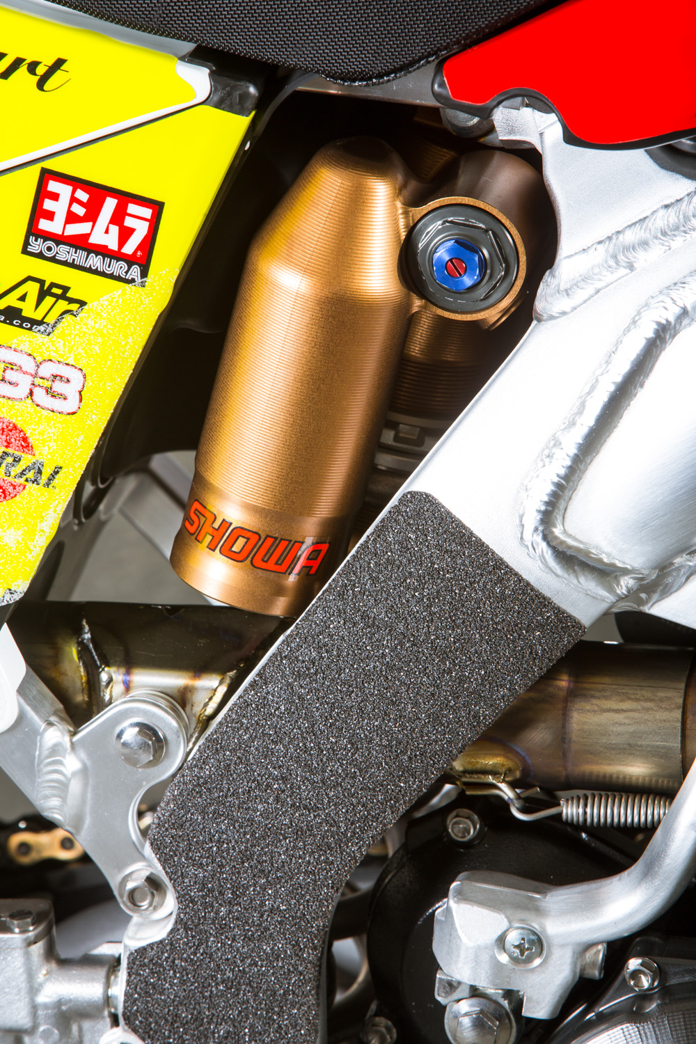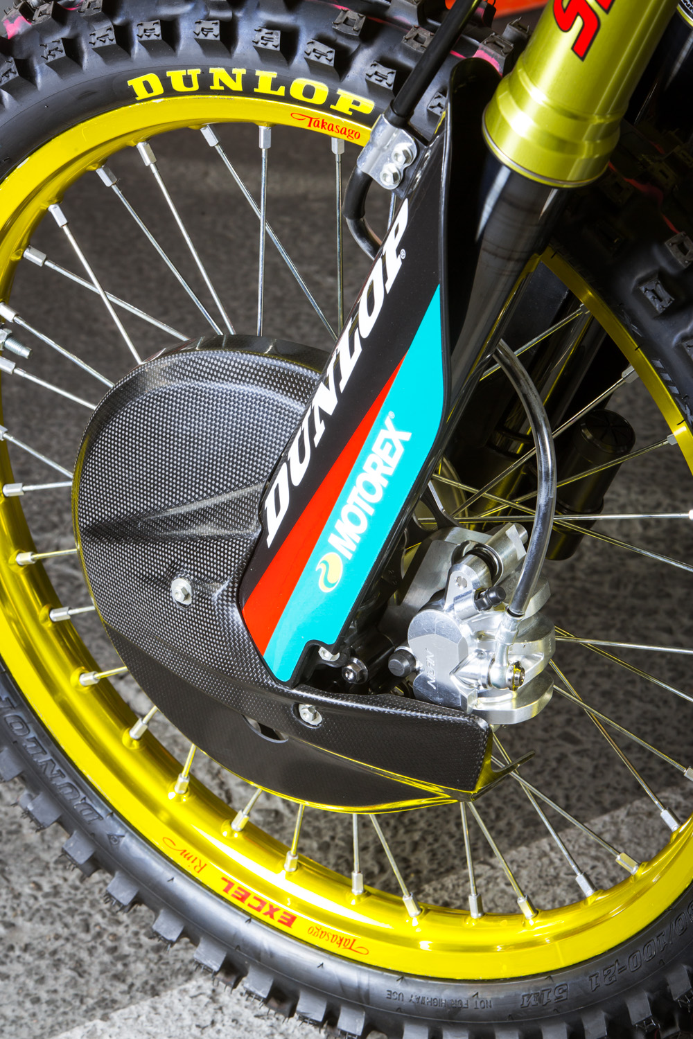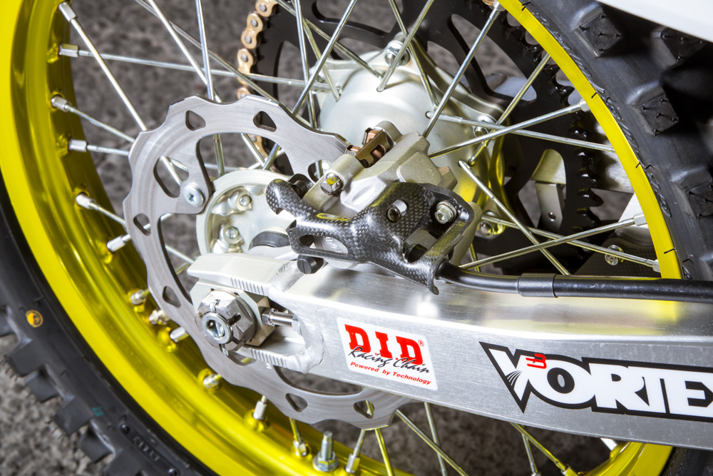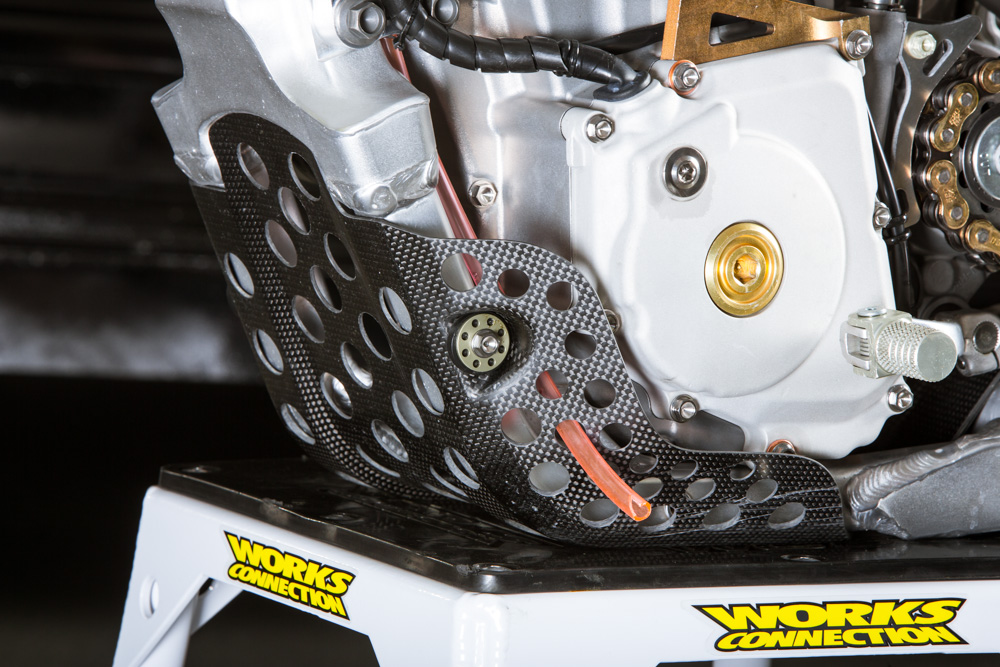 Мотоцикл Стюарта – это, конечно же, далеко не «стандарт», но и не имеет каких-либо сумасшедших инноваций или дополнений. В этом году изменений два - это воздушная вилка Showa Triple Air Fork и специально для суперкросса, команда решила установить новый выхлоп из карбона и титана, чтобы снизить вес.