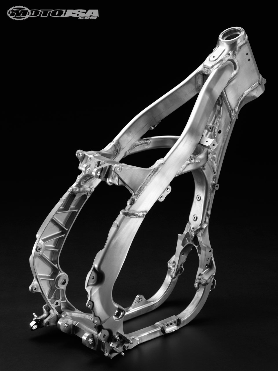 Что бы улучшить управляемость и придать мотоциклу ощущение более легкого (а весит новый WR450 столько же, как и предыдущая модель) инженеры Ямаха применили новую билатеральную раму от YZ250F. Используя более узкую и короткую раму из мотокросса удалось добиться более податливой управляемости и ощущения легкости всего мотоцикла при общей более жесткой конструкции. Так же новая рама позволила увеличить дорожный просвет на 7мм и уменьшить высоту седла и заднего крыла на 11 мм.