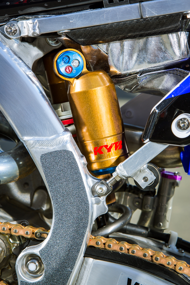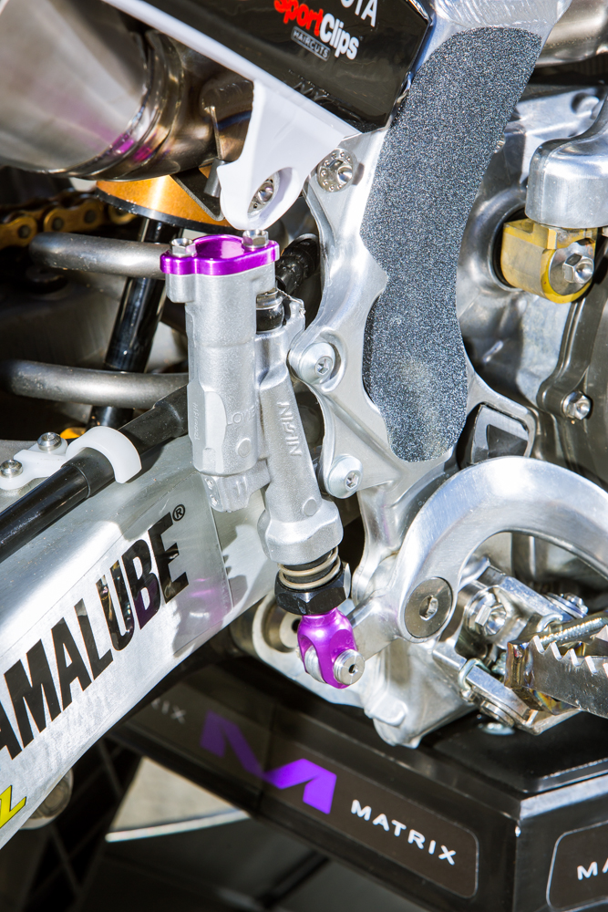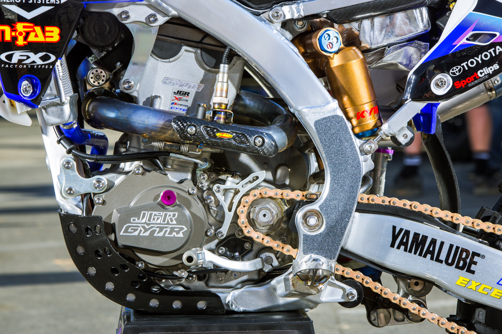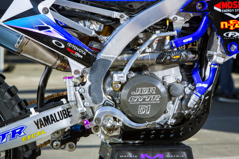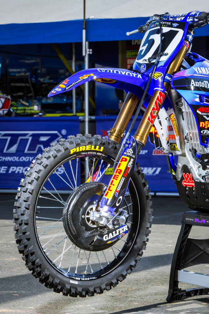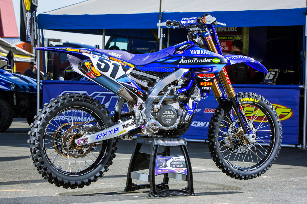 Возможно, это один из самых крутых мотоциклов в боксах команд-участниц АМА Суперкросс 2015. Представляем YZ450F  Джастина Баршиа, выступающего в этом сезоне за команду AutoTrader.com/Toyota/Yamaha. Мотоцикл специально построен для Джастина -  начиная от подвески  и двигателя, и кончая подрамником с подножками - все сделано на заказ. Смотрим...