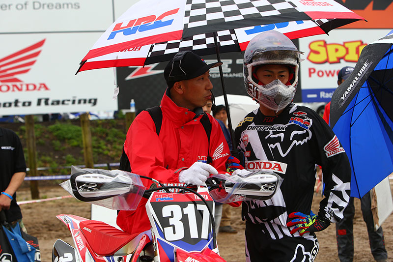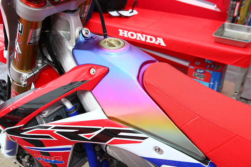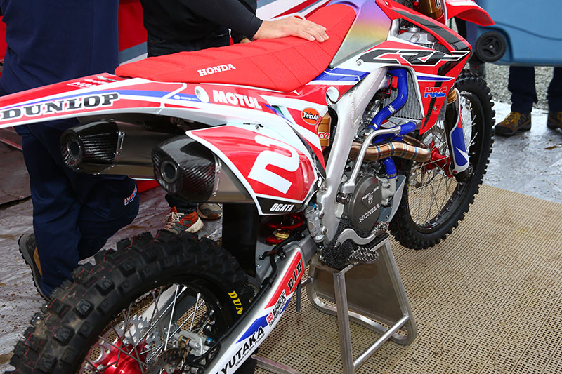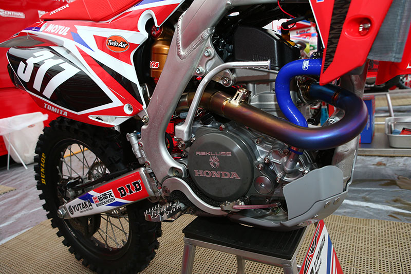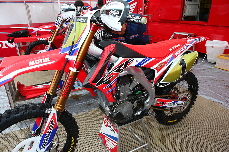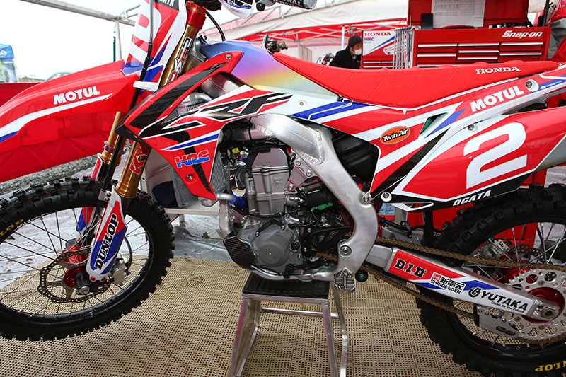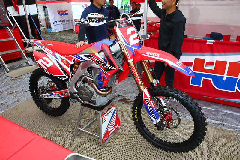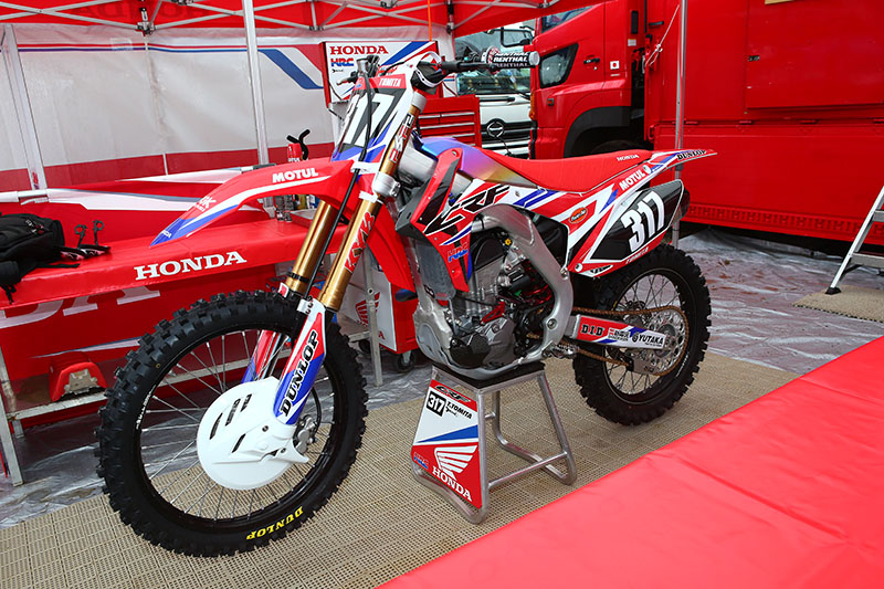 Мотоцикл CRF450R десятикратного чемпиона Японии Акира Нарита. Его машина оснащена золотым номерным фоном в честь его рекордного десятого титула.