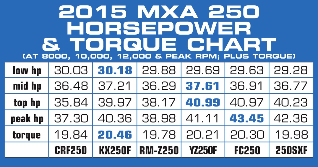 В тесте на выбывание пилотами МХА, все свелось к борьбе между Kawasaki KX250F и Yamaha YZ250F. В конце концов, Yamaha получила высшую оценку высшую награду. Каждый год, как мы давали KX250F первое место только из-за его двигателя, а не из-за его слабого сцепления, не особо внятной подвески и управляемости старой школы.