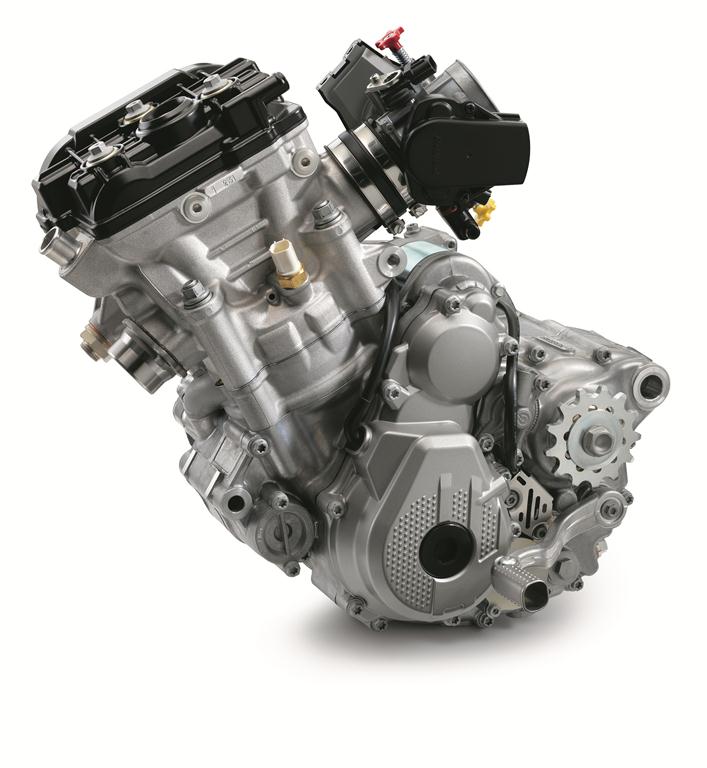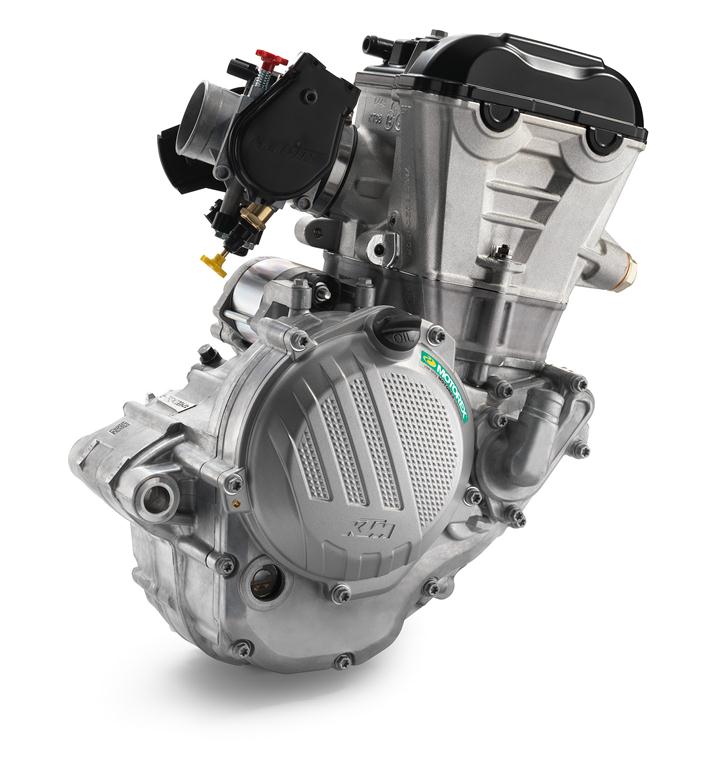 Двигатели объемом 250 и 350 см3 получили новый картер, который гораздо меньше и легче чем на моторах прошлых модельных лет. Новое расположение коленчатого вала повлекло за собой уменьшение длины шатуна, что, соответственно, уменьшило его вес. На укороченном цилиндре установлена головка с измененной формой камеры сгорания и новыми распределительными валами. Сцепление CSS обзавелось облегченной корзиной с новыми пружинами и приводом Brembo, который сменил традиционную гидравлику Magura. Благодаря всему этому удалось существенно уменьшить вибрации при работе и уменьшить общую массу силовых установок: объемом 250 см3 – на 1,1 кг, а 350 см3 – на 1,0 кг. И при всем при этом, мощность двигателей выросла и теперь составляет 46 и 58 лошадиных сил, соответственно.