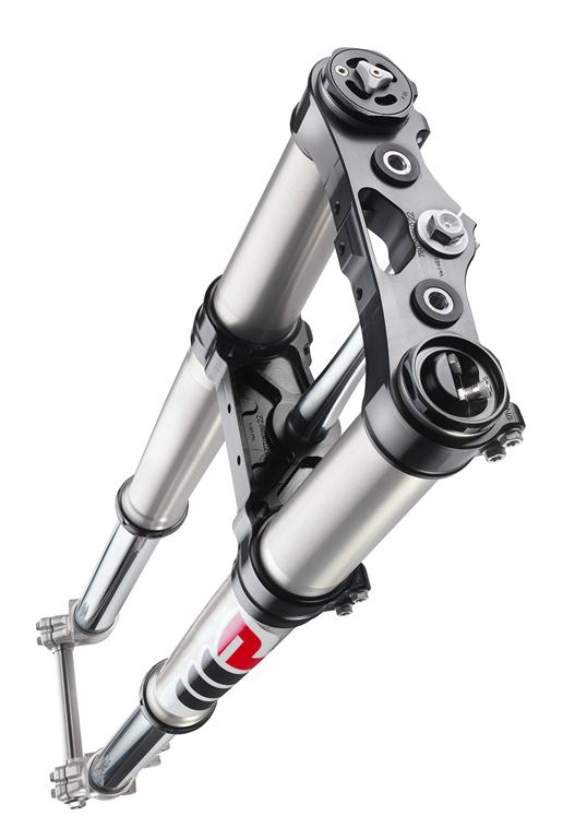 Для большей стабильности и лучшего баланса была изменена рычажная система прогрессивной характеристики задней подвески. Длина основного линка, соединяющего маятник с рамой мотоцикла была увеличена до 148,2 мм. За демпфирование в передней подвеске теперь отвечает новая «воздушная» вилка WP AER 48. По примеру японцев, для уменьшения общего веса мотоцикла, в качестве демпфирующего элемента теперь используется не стальная пружина, а… сжатый воздух. Благодаря этому, вес передней подвески уменьшился на 1,4 кг, а для ее точной регулировки достаточно иметь самый простой насос высокого давления.