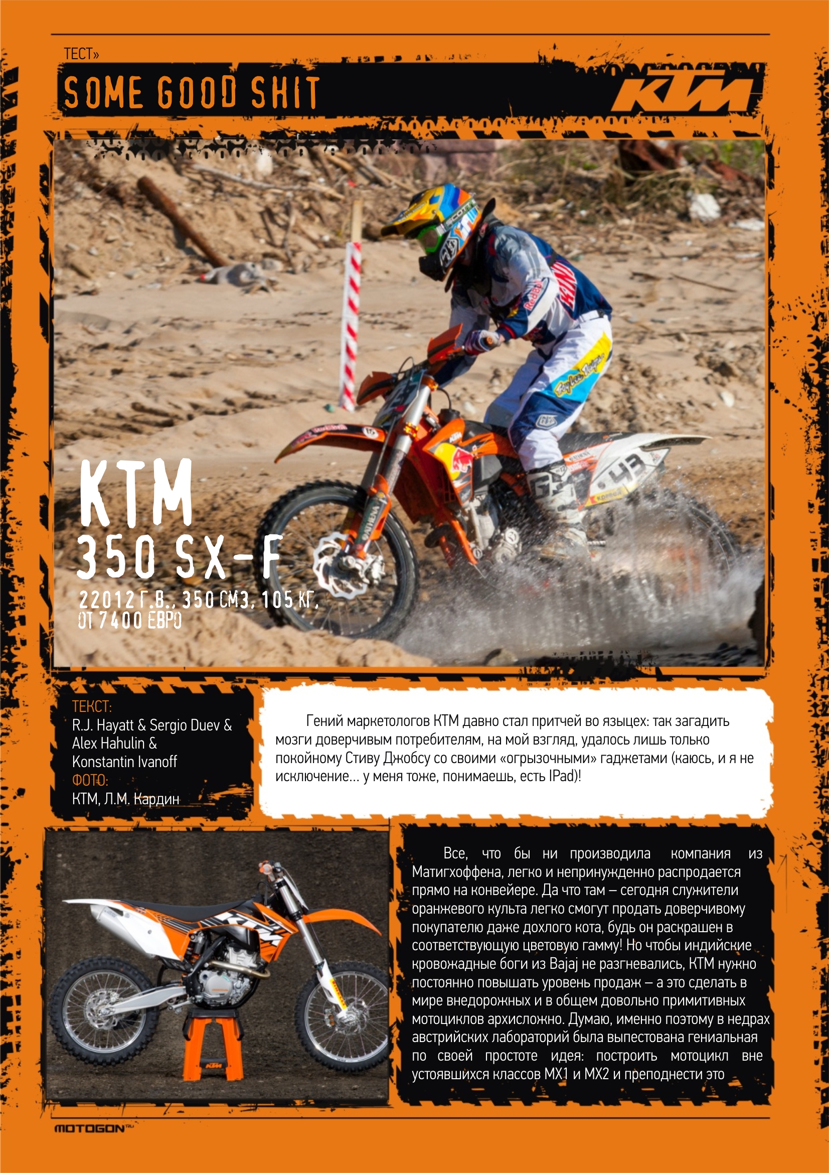 Some good shit... KTM 350 SX-F 2012г.в. 05.10.2012 R.J. Hayatt & Sergio Duev & Alex Hahulin & Konstantin Ivanoff Комментарии Комментарии к этой статье запрещены.