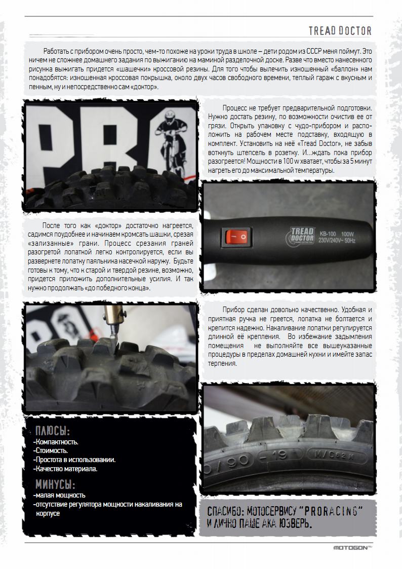 Так уж сложилось, что я родом из не очень богатой семьи. Поэтому, как и многие, стараюсь считать деньги и по возможности не совершать бесполезных покупок. Если что-то ломается, то в первую очередь вещь стараюсь починить/восстановить, а уж потом бегу в магазин за новой деталью. Кроссовая резина, как известно, один из самых распространенных расходников. Пусть стоит она не так дорого, как шоссейная, зато изнашивается в 10 раз чаще!