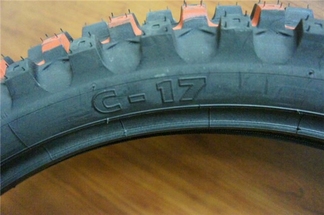 Переднюю же покрышку Mitas C-17 TT, размерностью 90/90-21 я взял пожестче: для каменистой и твердой местности.
