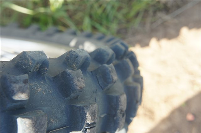 Через 3 месяца мотоцикл всетак же обут в резину Mitas. Ездил я мало и по моим прикидкам покрышки прожили около 20 моточасов. Режим эксплуатации: в основном "бетон" X-arena/ Мотоцикл проехал гонку Iron Man и не подо мной - "чайником". За рулем был Леха-Морячек, представлять которого не требуется. Так же на С-18 я ездил на эндуро в Старополье. В грязи старая резины вела конечно себя не очень пристойно, но при открытии газа исправно очищалась. Этим я и пользовался. Кстати на 450 поставили Continental, универсальный. За одну тренировку он затер грани больше чем Mitas за 5 часов.