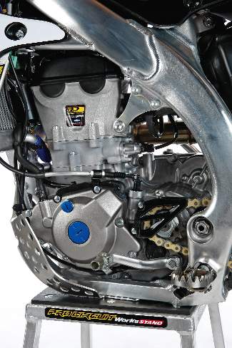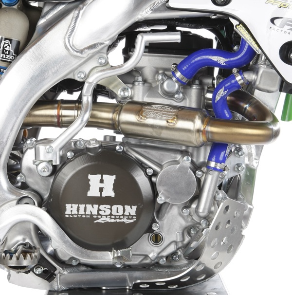 Pro Circuit проделали большую работу по улучшению, и так очень неплохого двигателя, расширив диапазон мощности. Начав тесты его мотоцикла, мы не были разочарованы работой двигателя и подвески. Тест-пилоты сразу отметили хороший крутящий момент по сравнению со стандартной KX450F. Это позволило проходить повороты на повышенной передаче и обеспечило ровную тягу на всех участках трека. Мы определенно достигли нашей цели: дружелюбный, но мощный двигатель для класса Vet. Единственное разочарование было то, что для про-райдеров, этот мотор слишком спокойный.
