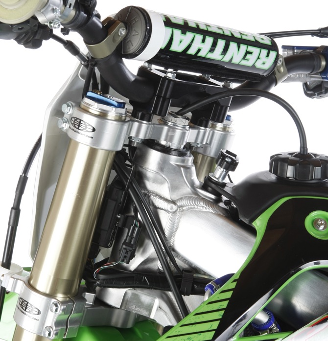 Теперь Фил устремил свой взор на продукцию Renthal и выбрал руль 976 TwinWall ($ 119.95) и ручки ($ 19.95), затем добавил алюминиевую ручку газа Pro Circuit ($ 59.95). Он также сменил стандартные рычаги на Pro Circuit: рычаг тормоза ($ 24.95) и рычаг сцепления ($ 19.95). Перекладина руля Works Connection «встала» еще в $ 27.50. Сумма - $ 273.