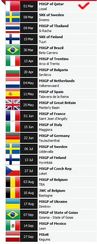 Первый этап, Гран-При Катара откроет новый сезон Чемпионата мира 2014 по мотокроссу (FIM World Motocross Championships) и пройдет 1 марта на треке в Дохе в трех классах: MXGP, МХ2 и WMX (женский класс).