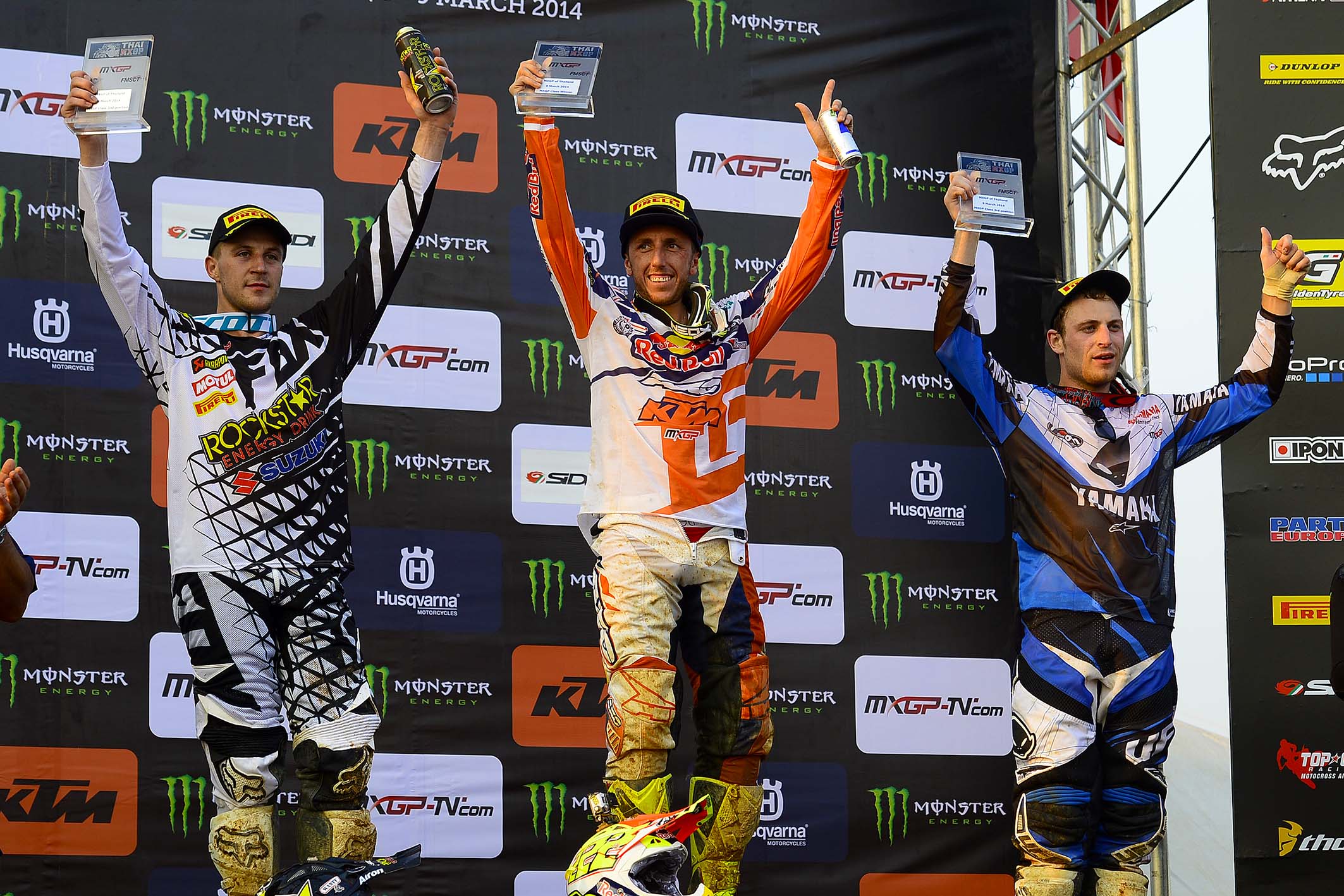 В классе MX2 двойная победа досталась гонщику заводской команды KTM Джефри Херлингсу: он вновь продемонстрировал свой выдающийся талант и силу в начале сезона, который может принести ему третий подряд титул чемпиона класса MX2. Он опередил своего соотечественника Глена Кольденхофа, который к общему удивлению занял второе место. Это место на подиуме стало для команды и марки Suzuki первым с 2010 года. Четвертое место по результатам этапа досталось французу Дилану Феррандису. Гонщик команды Kawasaki отнял поул-позицию у Херлингса в субботу, но в воскресенье совсем немного не дотянул до подиума. Тем не менее, после этого этапа он поднялся на вторую строку в борьбе за титул чемпиона класса MX2.
