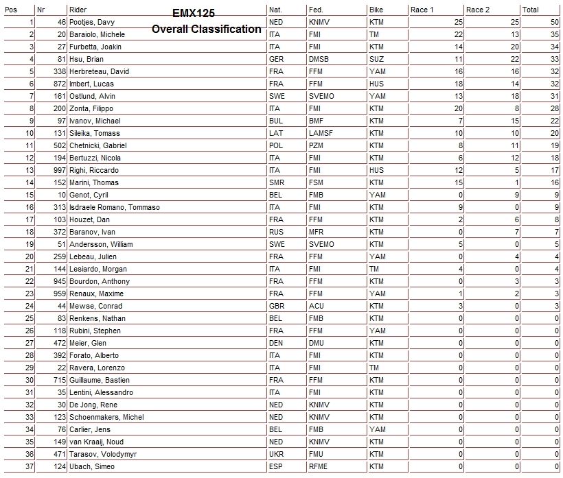 ЕМХ125: Дэви Путжес - первый, Иван Баранов - восемнадцатый.