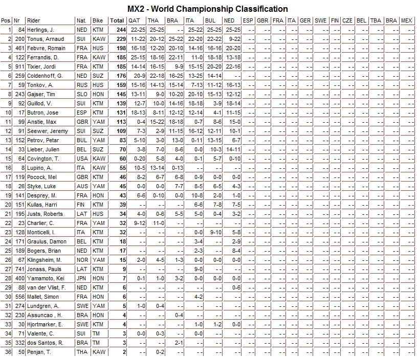 Результаты в классах MXGP и МХ2...