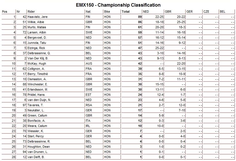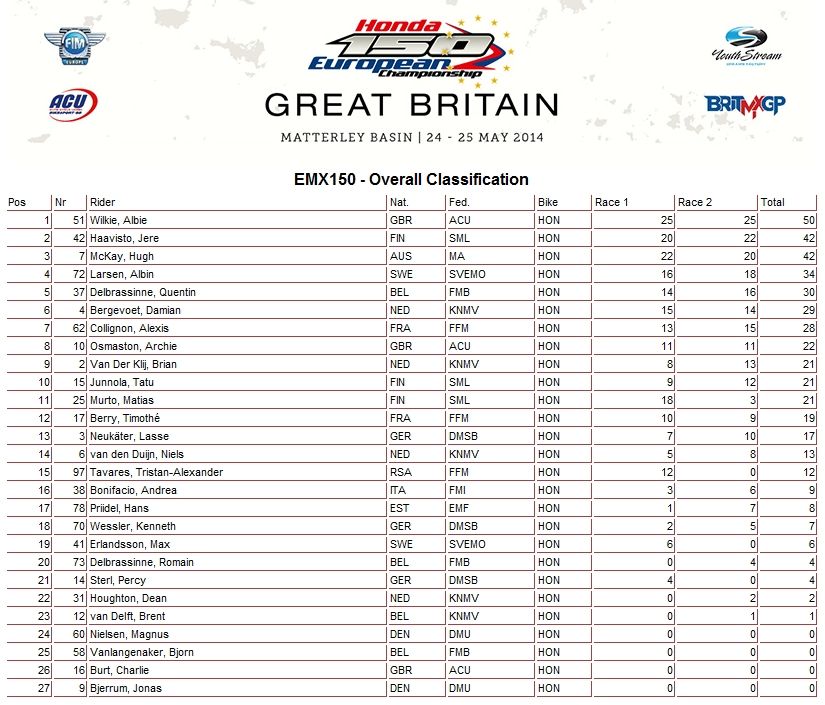 Результаты и общий зачет - Класс ЕМХ150 (2-й этап):