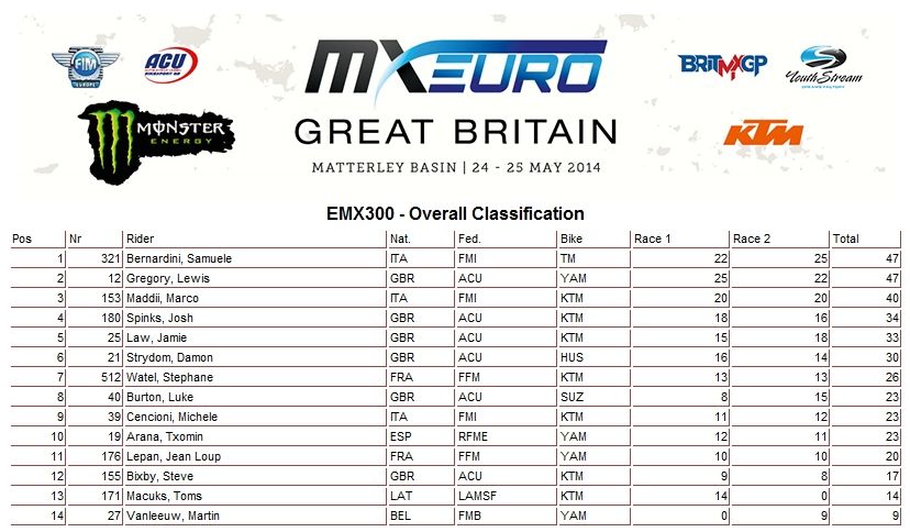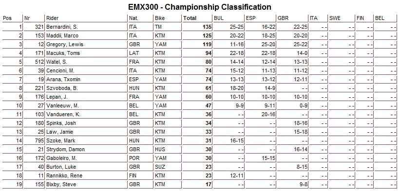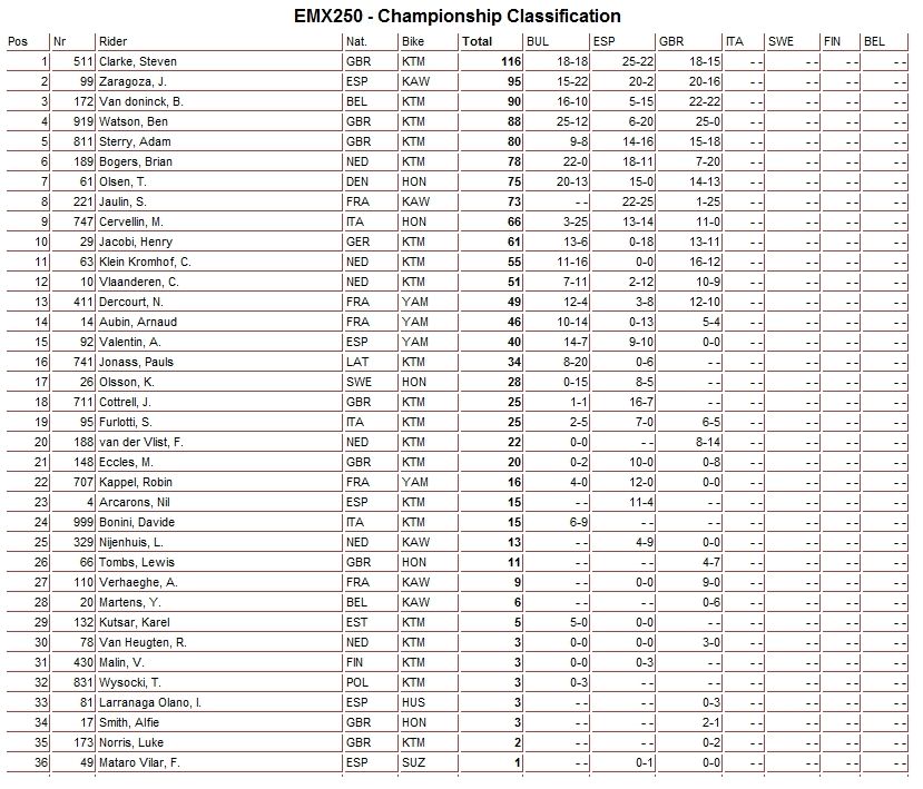 Результаты и общий зачет -Класс ЕМХ250 (3-й этап):