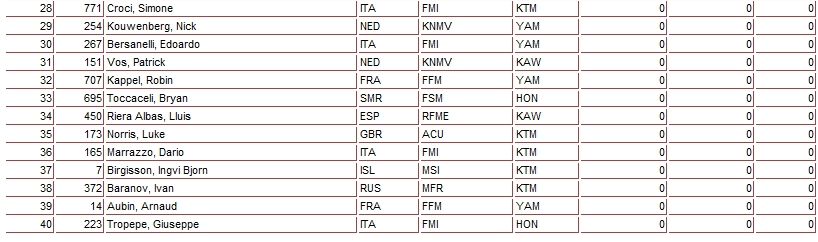 На этом этапе в классе ЕМХ250 принял участие и российский гонщик Иван Баранов. По результатам первого заезда он на 25-м месте, во втором заезде сход и как итог лишь 38-е место из 40 стартовавших.