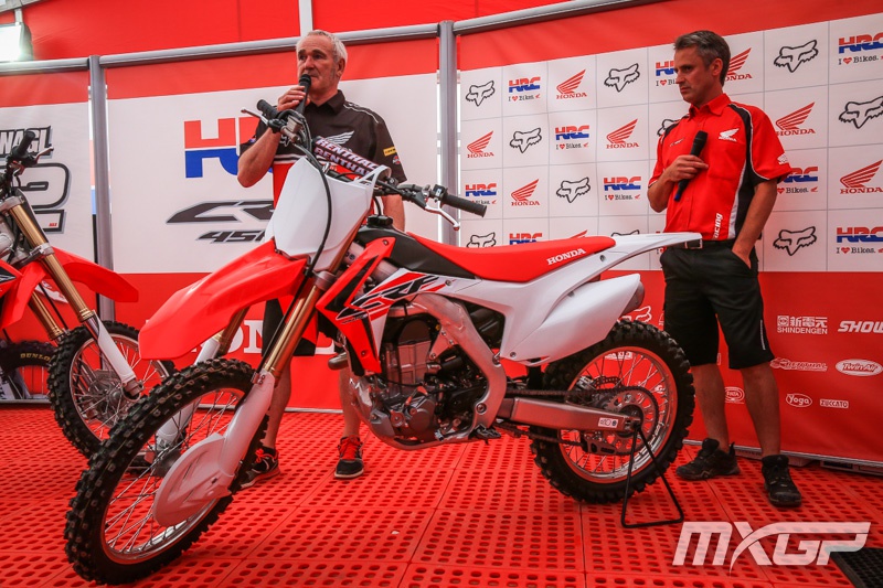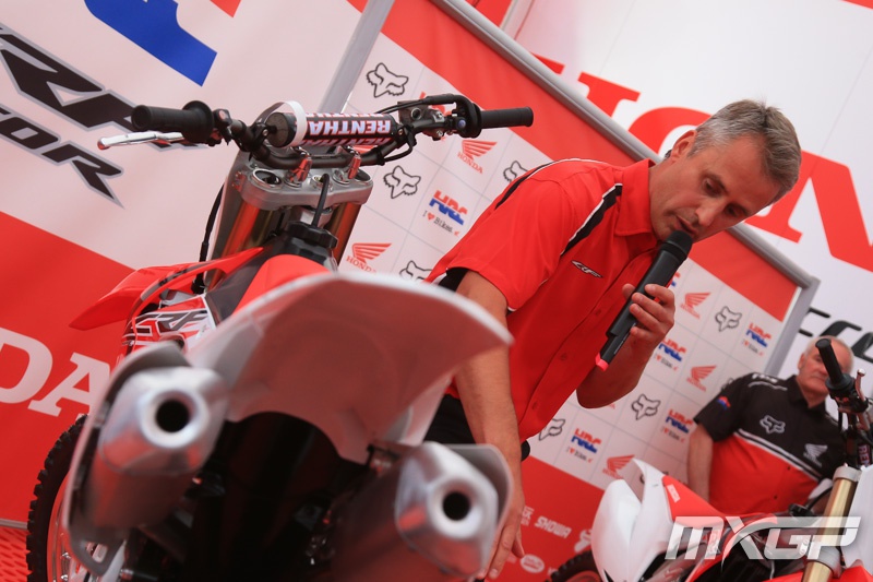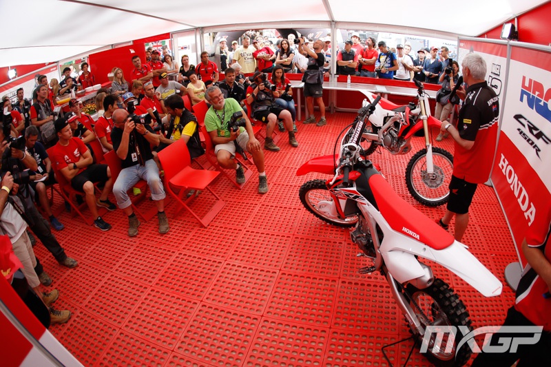 Вчера пилоты HRC: Евгений Бобрышев (класс MXGP) и Тим Гайсер (класс МХ2) представили новые кроссовые мотоциклы Honda 2015 года на дне прессы, который прошел в рамках итальянского Гран-При.