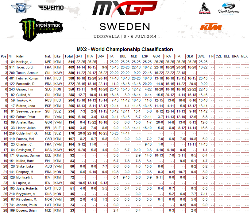 Только, что закончились основные заезды двенадцатого этапа Чемпионата мира 2014 - Гран-При Швеции.