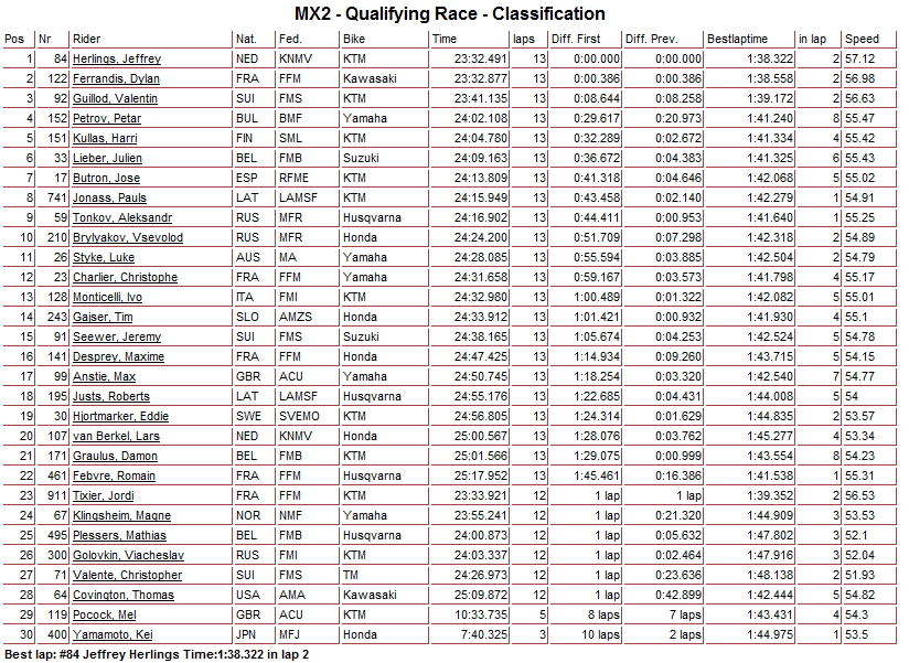 Итоги квалификационных заездов в классах МХ2 и MXGP...