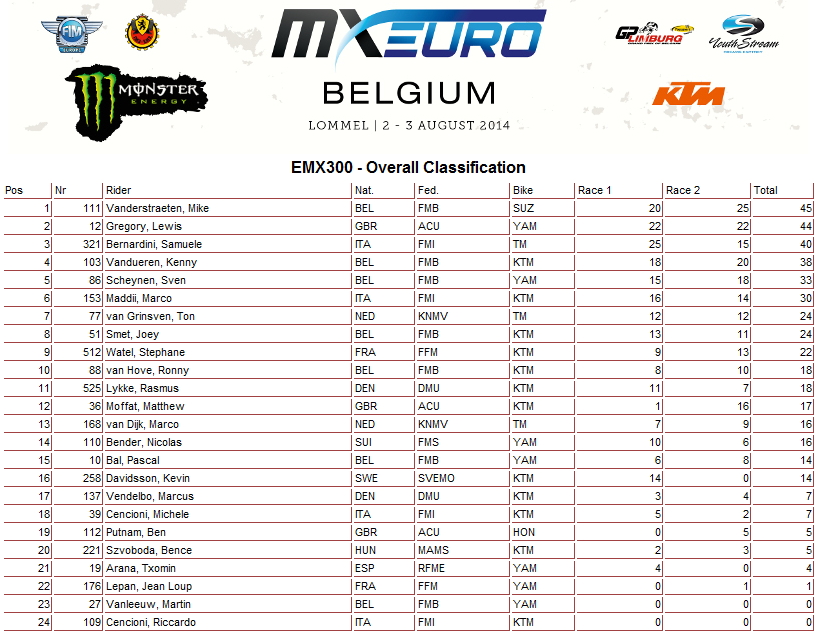 В этот уик-энд в Бельгии, на треке в Ломмель, прошли заезды заключительных этапов Чемпионата Европы 2014 классах ЕМХ125, ЕМХ150, ЕМХ250 и ЕМХ300. Подведем итоги чемпионата: