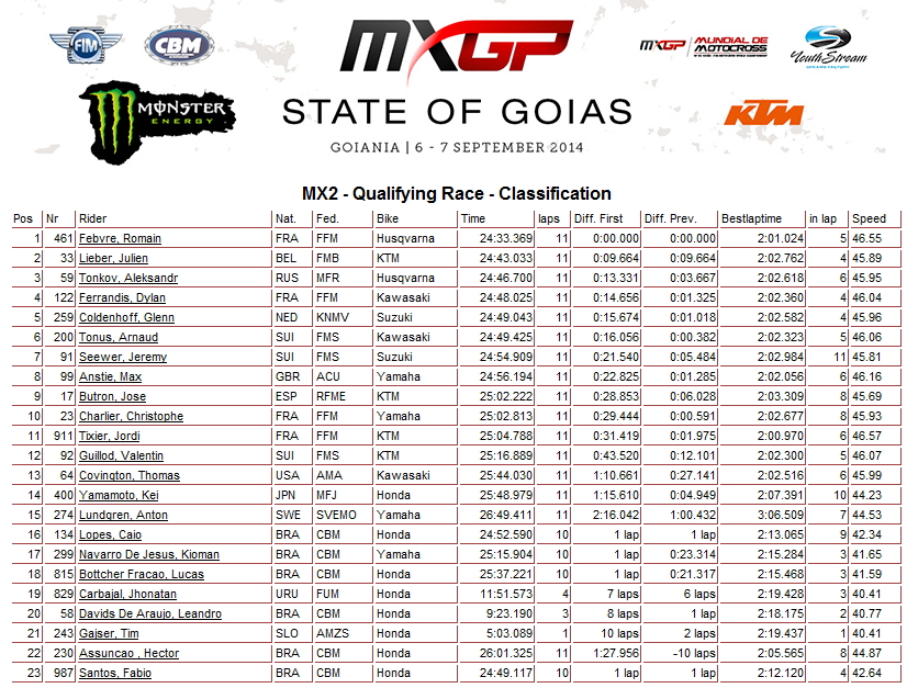 В минувшую субботу на новом треке в Goias, прошли квалификационные заезды шестнадцатого этапа Чемпионата мира по мотокроссу 2014 - Гран-При Бразилии. Победителями стали Макс Нагл (класс MXGP) и Ромьен Фебвре (класс МХ2).
