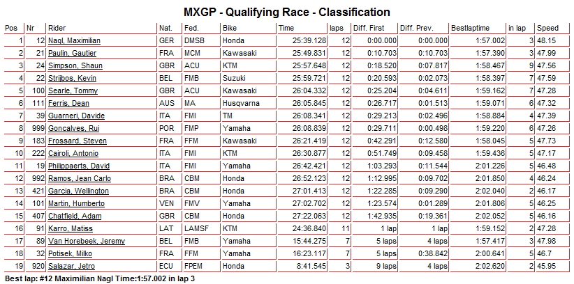 Предлагаем ознакомиться с результатами квалификации в классах МХ2 и MXGP: