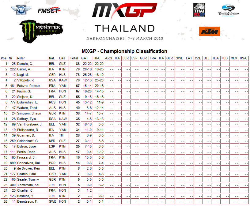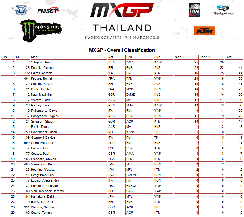 Победителем Гран-При Таиланда стал американец Райан Виллопото ( 1 и 3 места в заездах) и это его первая победа на этапах чемпионата мира по мотокроссу.