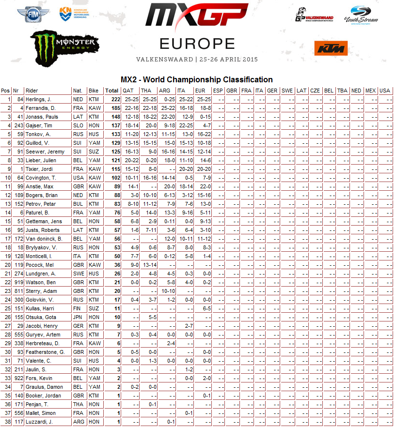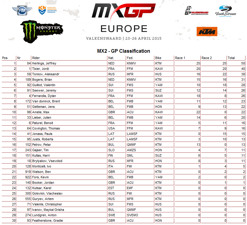 Результаты Гран-при Европы в классе МХ2 (ОБНОВЛЕНО).