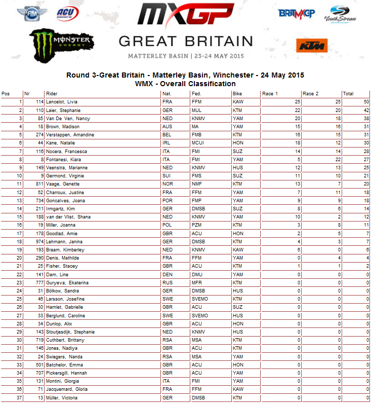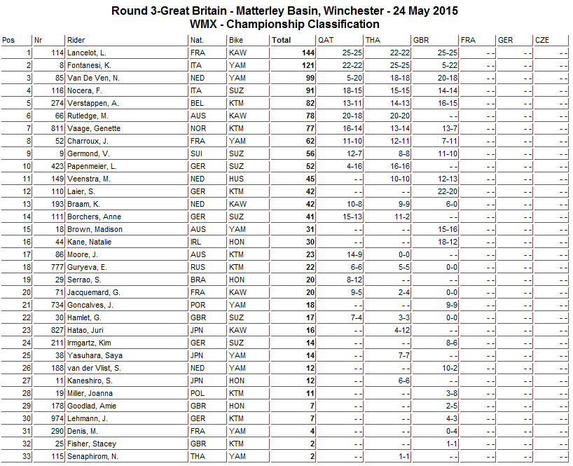 Итоги третьего этапа Чемпионата мира среди женщин (WMX).
