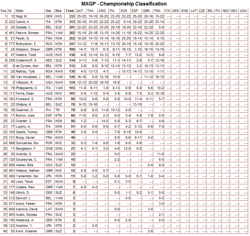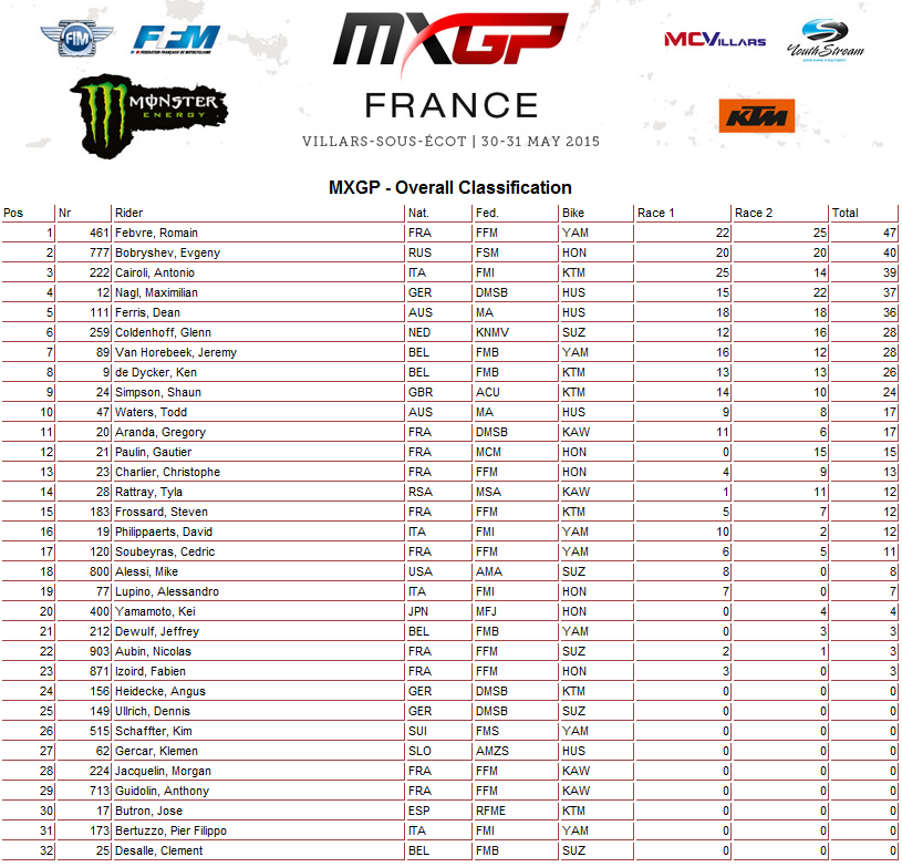 Итоги Гран-При Франции в классах МХ2 и MXGP.