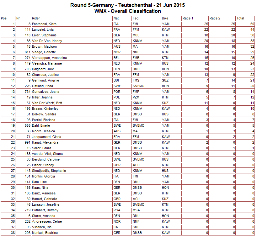 В этот уик-энд на треке Теченталь завершился пятый этап Чемпионата мира среди женщин. Победительницей Гран-При Германии стала итальянка Киара Фонтанези, которая выиграла оба заезда.