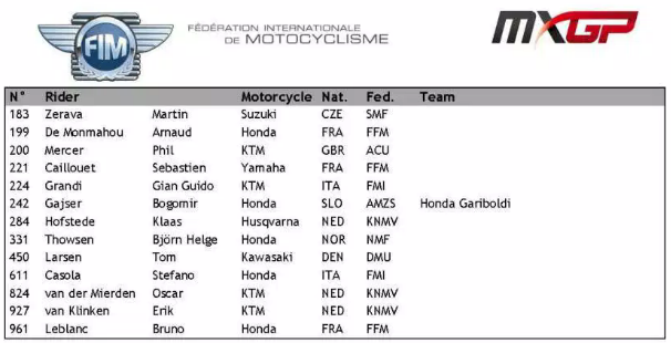 Среди участников заявлены прошлогодний победитель новозеландец Даррилл Кинг, чех Мартин Зерава, швед Мэтт Нильссон и отец Тима Гайсера - Богомир, который поедет при поддержке команды Honda Gariboldi.
