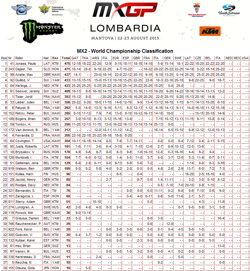 Итоги Гран-При Ломбардии в классах МХ2 и MXGP.