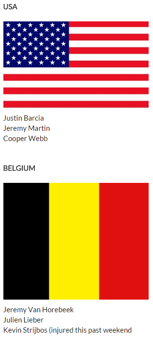 Команды участники Мотокросса Наций 2015: