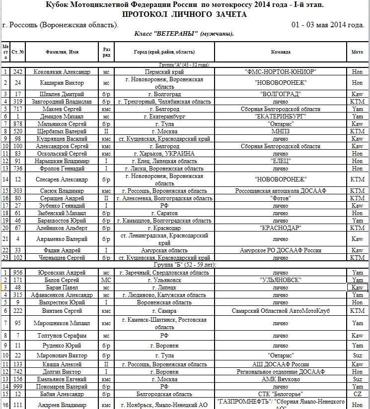Кубок МФР среди ветеранов 2014 - Россошь. 05.05.2014 МФР Результаты соревнований... С 1 по 3 мая, в г.Россошь (Воронежская область) прошел Кубок МФР среди ветеранов. Предлагаем ознакомиться с результатами соревнований: Комментарии Комментарии к этой статье запрещены.