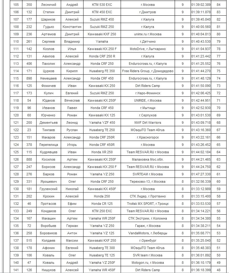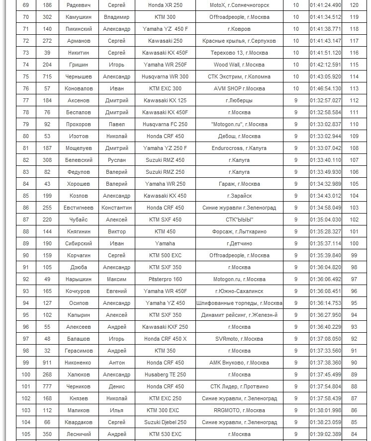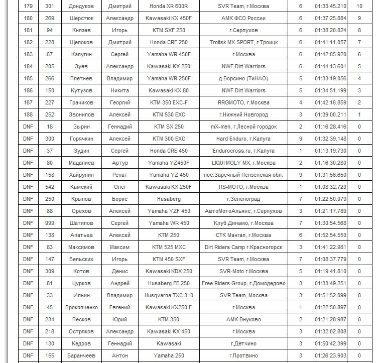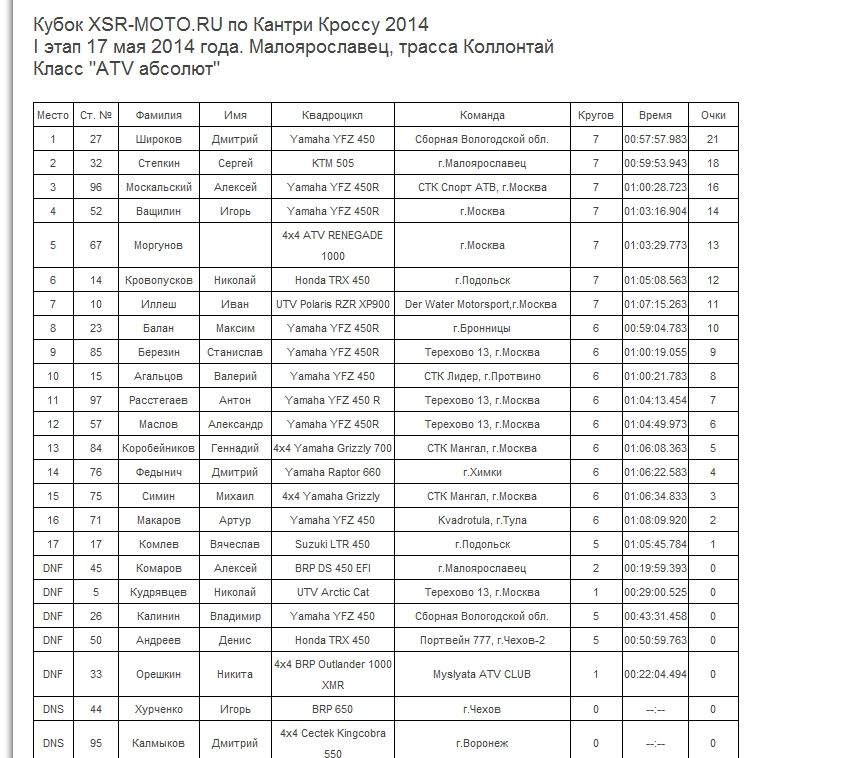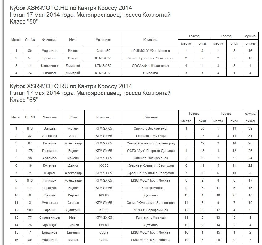Кубок XSR-MOTO по Кантри Кроссу 2014 - Результаты.