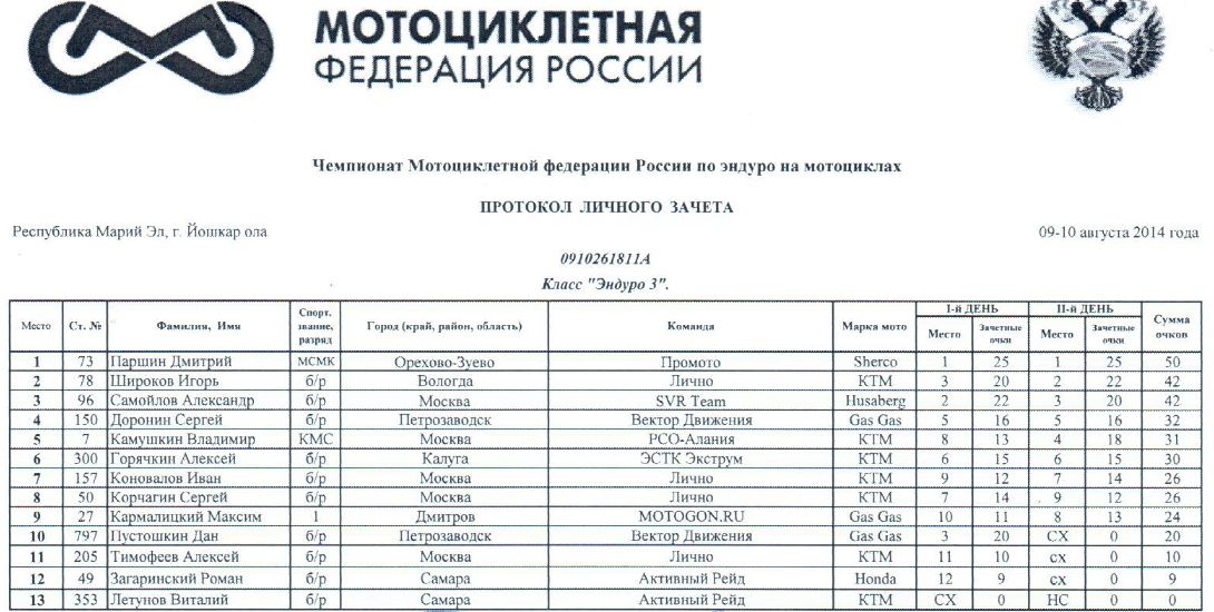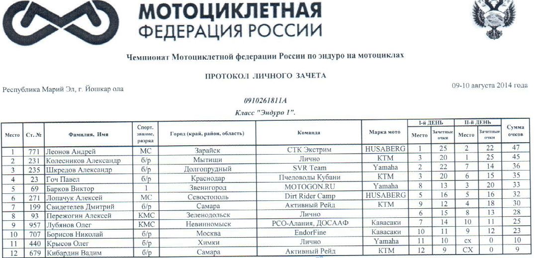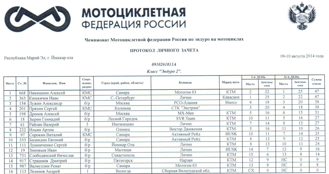 В классе "Эндуро 1" победу одержал Андрей Леонов из Зарайска. Алексей Никишкин из Самары по итогам второго дня все-таки "вырвал" победу в классе "Эндуро 2" у Ивана Кишкичева из Санкт-Петербурга.