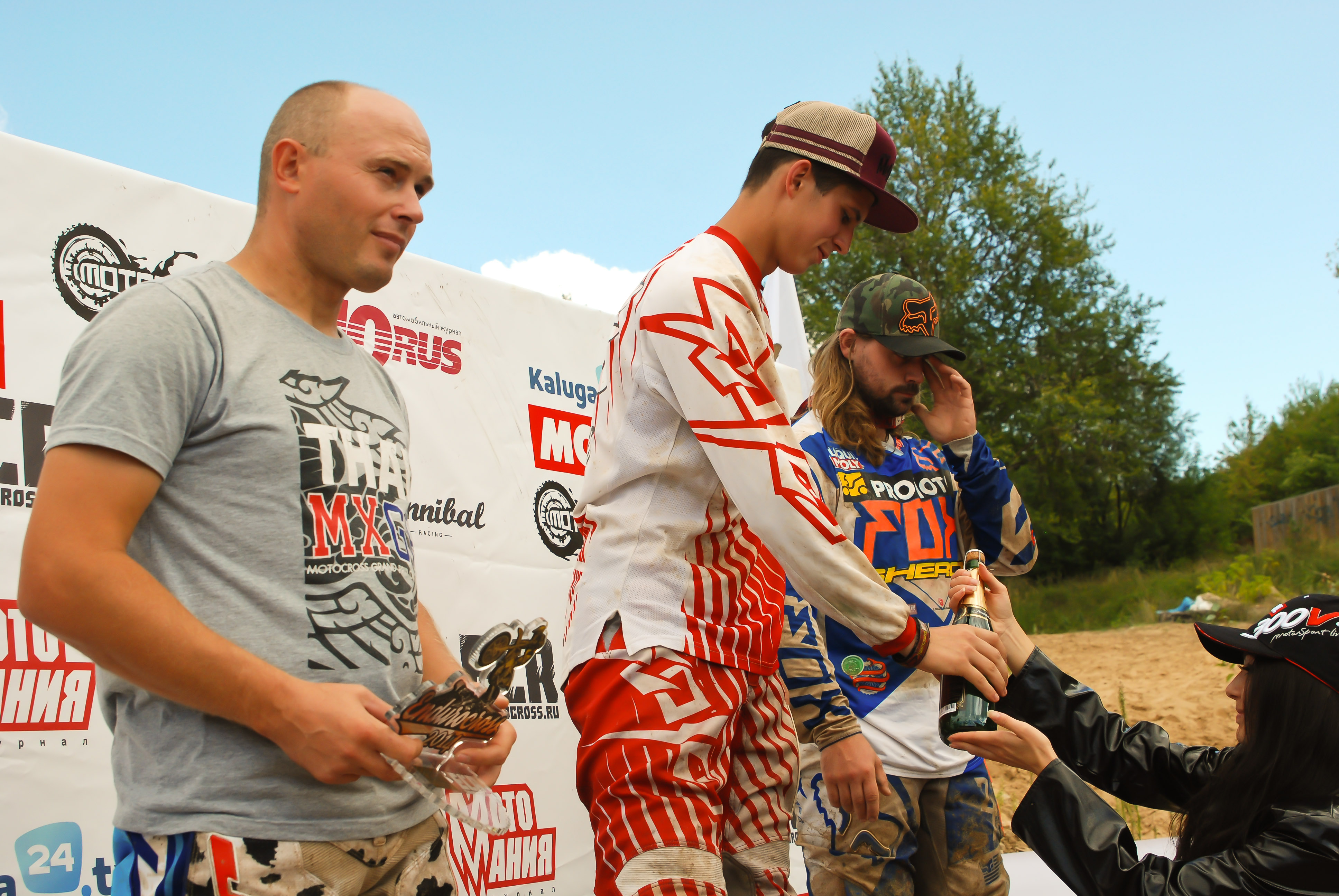 Сергей Фролов для калужан, прежде всего, звезда мотокросса под номером 800. В зрительской толпе про него говорили: «Тот, кто круче всех прыгает и быстрее всех ездит». И в этот раз от него ждали чего-то подобного: эффектных появлений, мягких приземлений, легкой и быстрой езды. Но ожидания публики оправдал другой спортсмен – молодой и дерзкий Давид Леонов, который опередил калужанина на круг и вел борьбу за первое место в классе «Open» с другим международником – Паршиным, который на пьедестале почета занял место по левую руку от Давида.