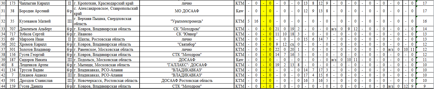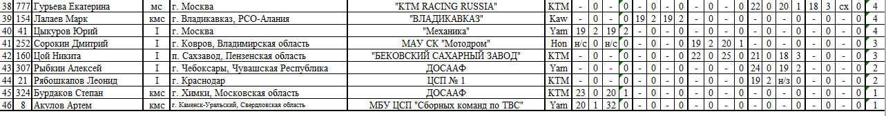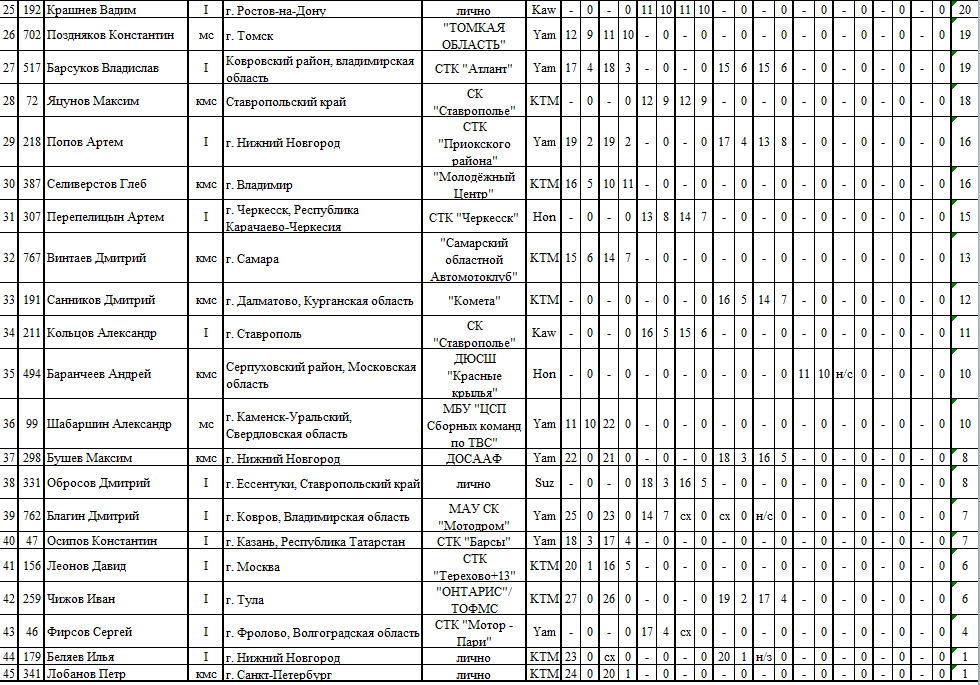 В классе 250сс чемпионский титул достался Максиму Назарову. Второе и третье места у Александра Иванютина и Александра Бугреева.