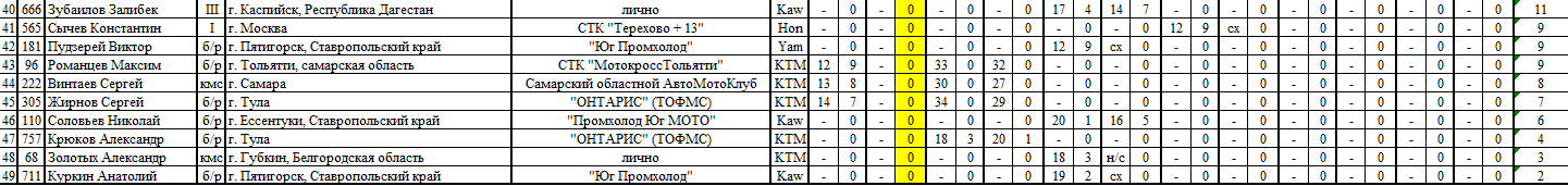 Победителями заключительного этапа стали: Матвей Широков в классе 65сс, Даниил Баландин в классе 85сс, Максим Назаров в классе 250, а в классе 125 этап выиграл Всеволод Брыляков. В классе OPEN2 победу одержал Сергей Фролов.
